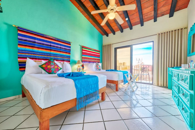 Cada espacio de Casa María fue pensado como un lienzo vivo. Piscina vibrante, habitaciones coloridas, murales artísticos y la energía acogedora de México. Es imposible salir de aquí sin recuerdos grabados en fotos y en el corazón.